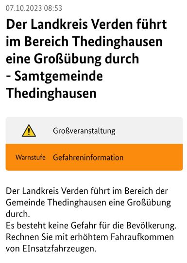 Der Landkreis Verden führt im Bereich der Gemeinde Thedinghausen eine Großübung durch.
