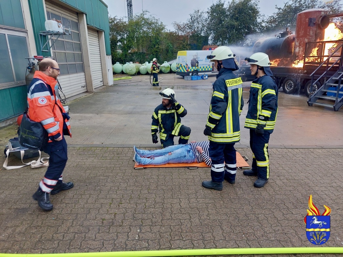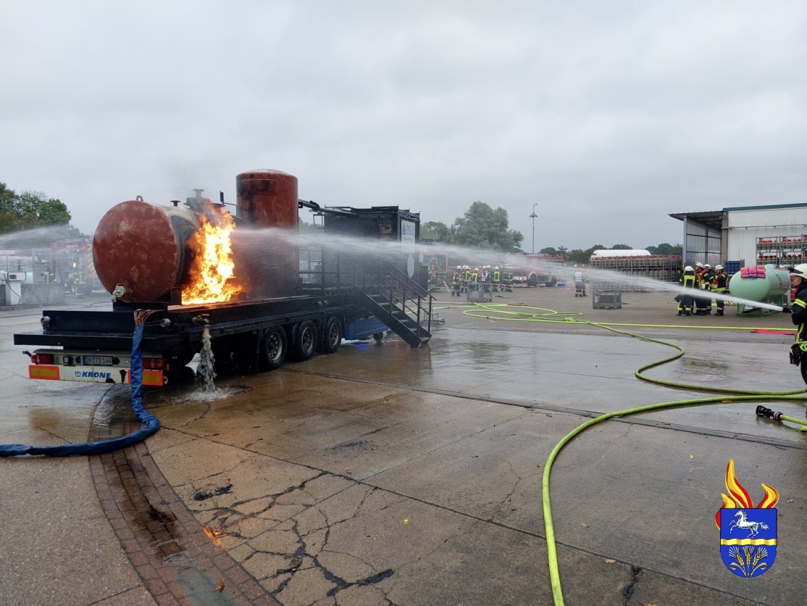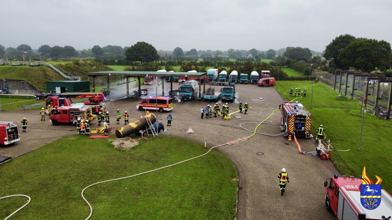 Zu einer Großübung wurden die Feuerwehren heute Morgen alarmiert. Auf dem Betriebsgelände der Firma Schröder Gas, in Thedinghausen, wurde ein Großschadenslage dargestellt und unter Realbedingungen abgearbeitet.