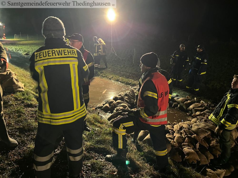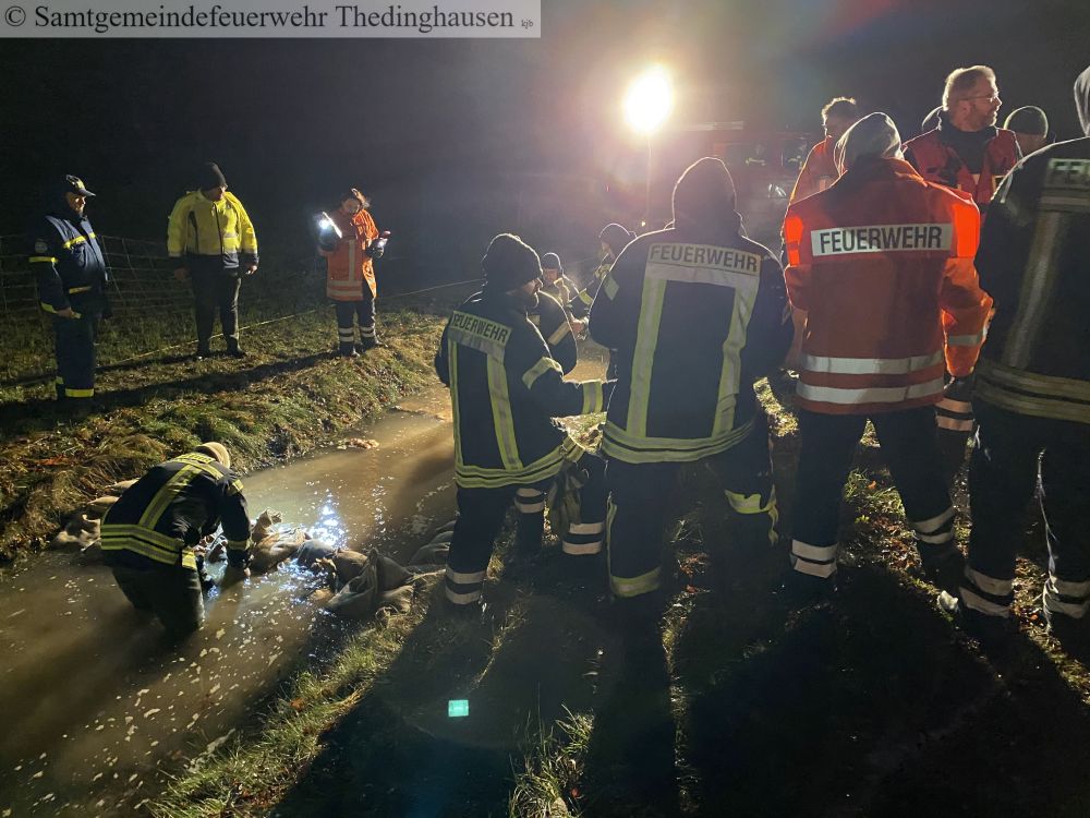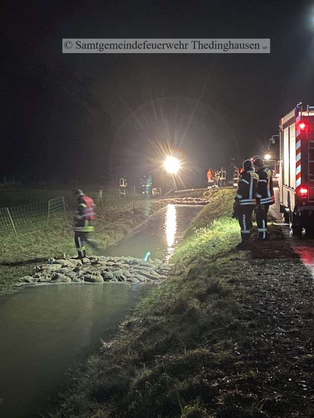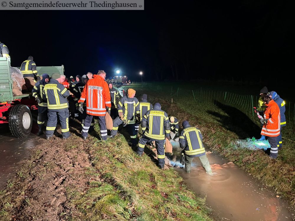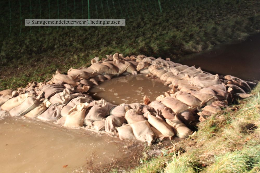 Bei einen dieser Kontrollgängen wurden Schadstellen an einem Deich in der Gemarkung Oiste sichtbar. Zur Schadensabwehr wurde durch die Feuerwehr Quellkaden errichtet wurden. Und somit wurden Stellen gesichert.