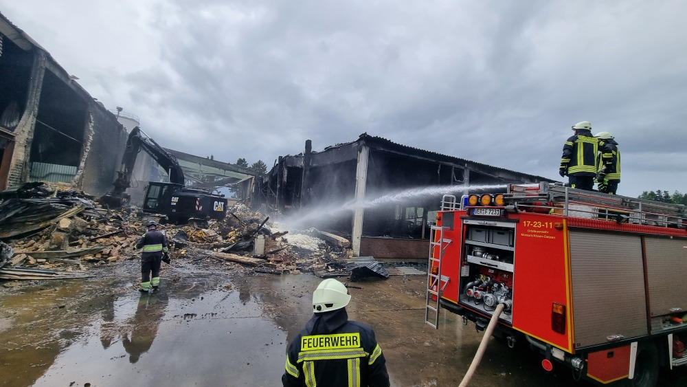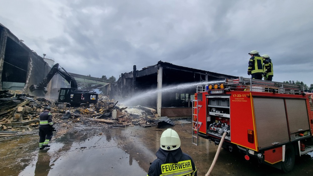 Bei den Aufräumarbeiten tauchten immer wieder Glutnester auf, die abgelöscht werden mussten um ein neues auflodern des Feuer zuverhindern.