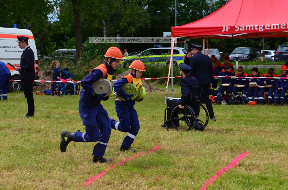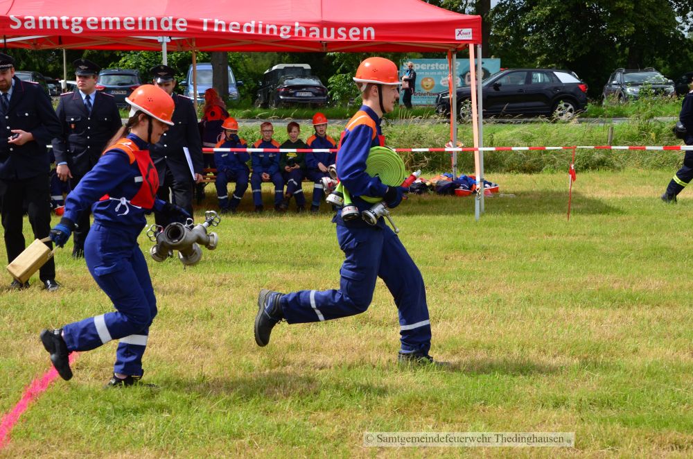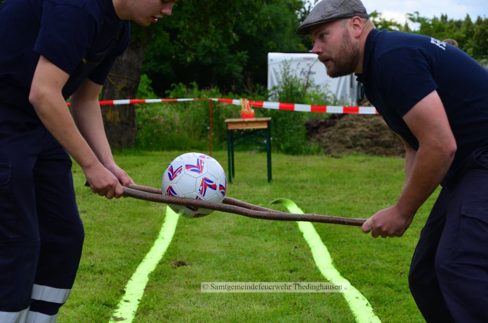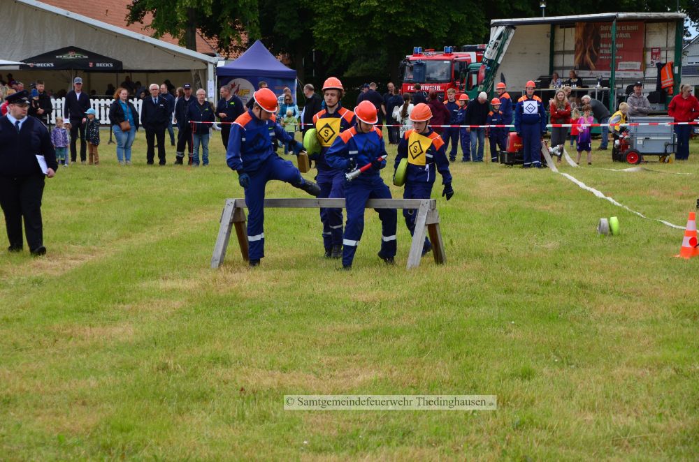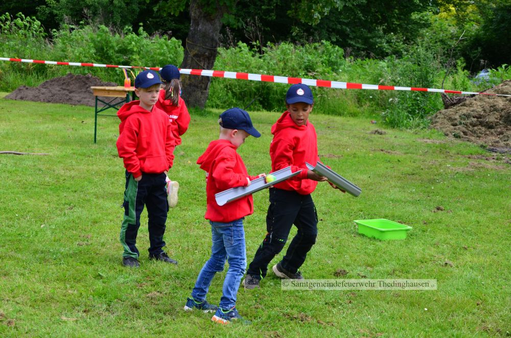 Die Kinderfeuerwehren „Blender Blaulichtbären“ und „Thedinghauser Feuerlöscher“ hatten ihren eigenen Wettkampf auf einer „Spaßbahn“ und werden Schritt für Schritt an die Jugendfeuerwehr herangeführt, um dann später am Bundeswettkampf teilnehmen zu können.
