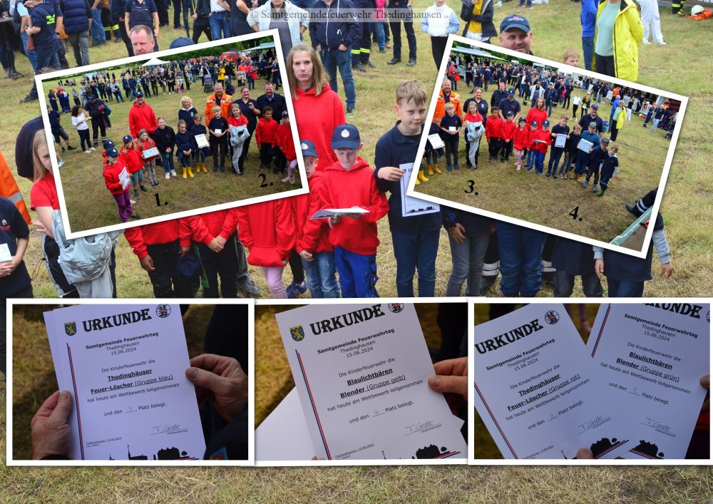 Kinderfeuerwehr: 1. Blender Gelb, 2. Thedinghausen rot, 3. Thedinghausen blau, 4. Blender grün.